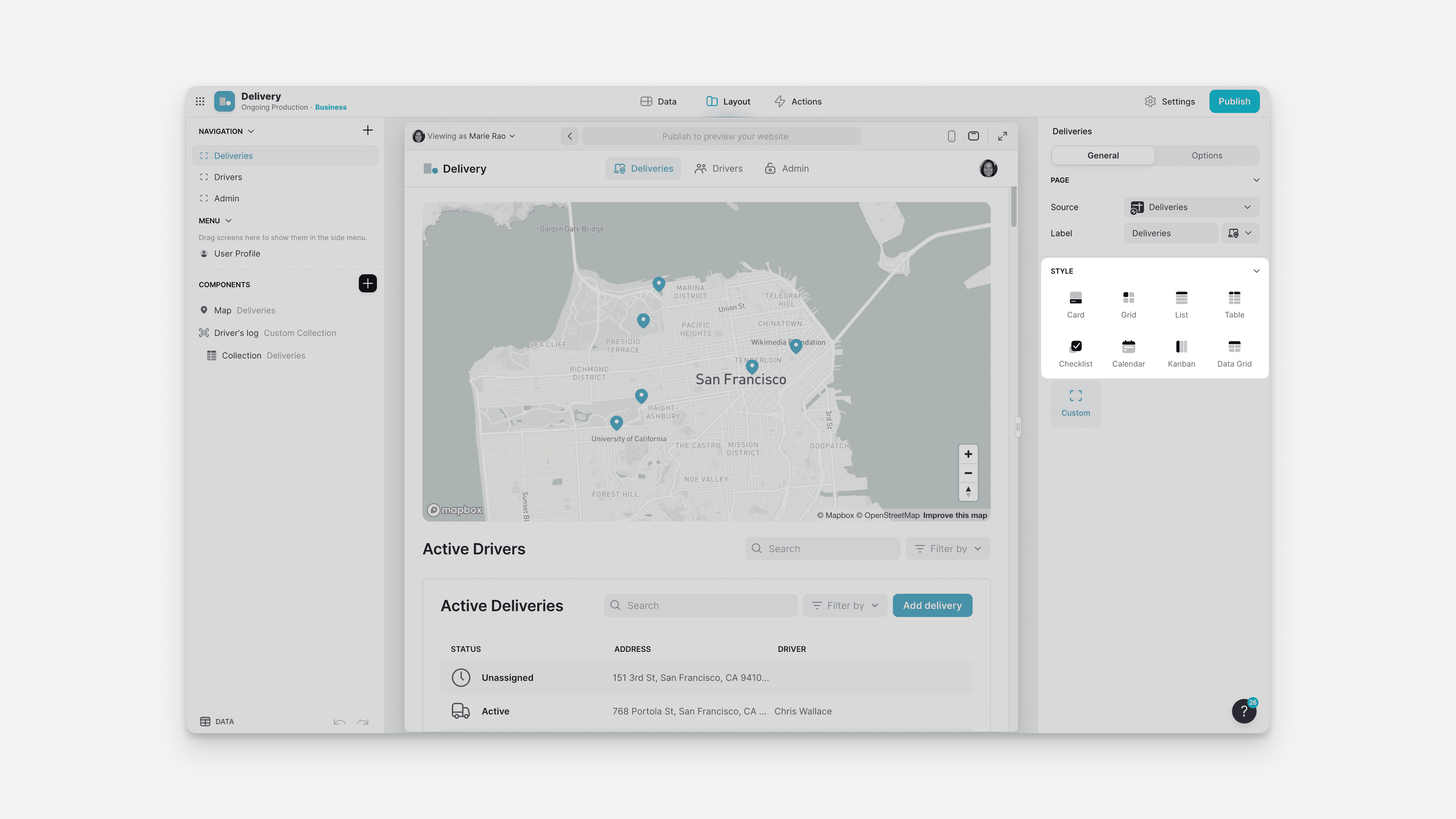 Similarly, if you add Components to a Collection Screen, the layout will change to a Custom Layout automatically.