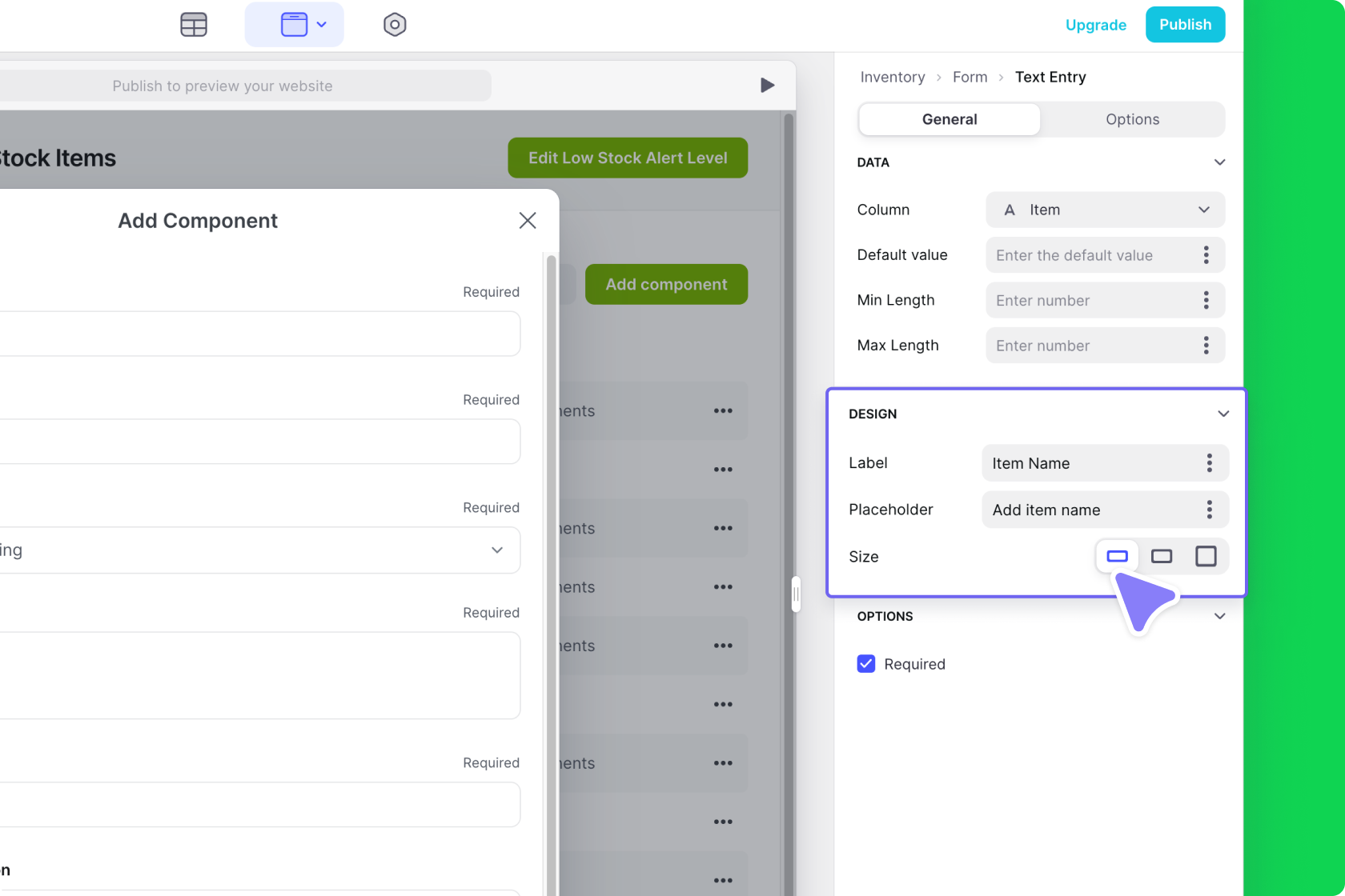 For the Text Entry component, you can also configure the size of the entry field, making it larger for times you'd like to capture multiple lines of text from users.
