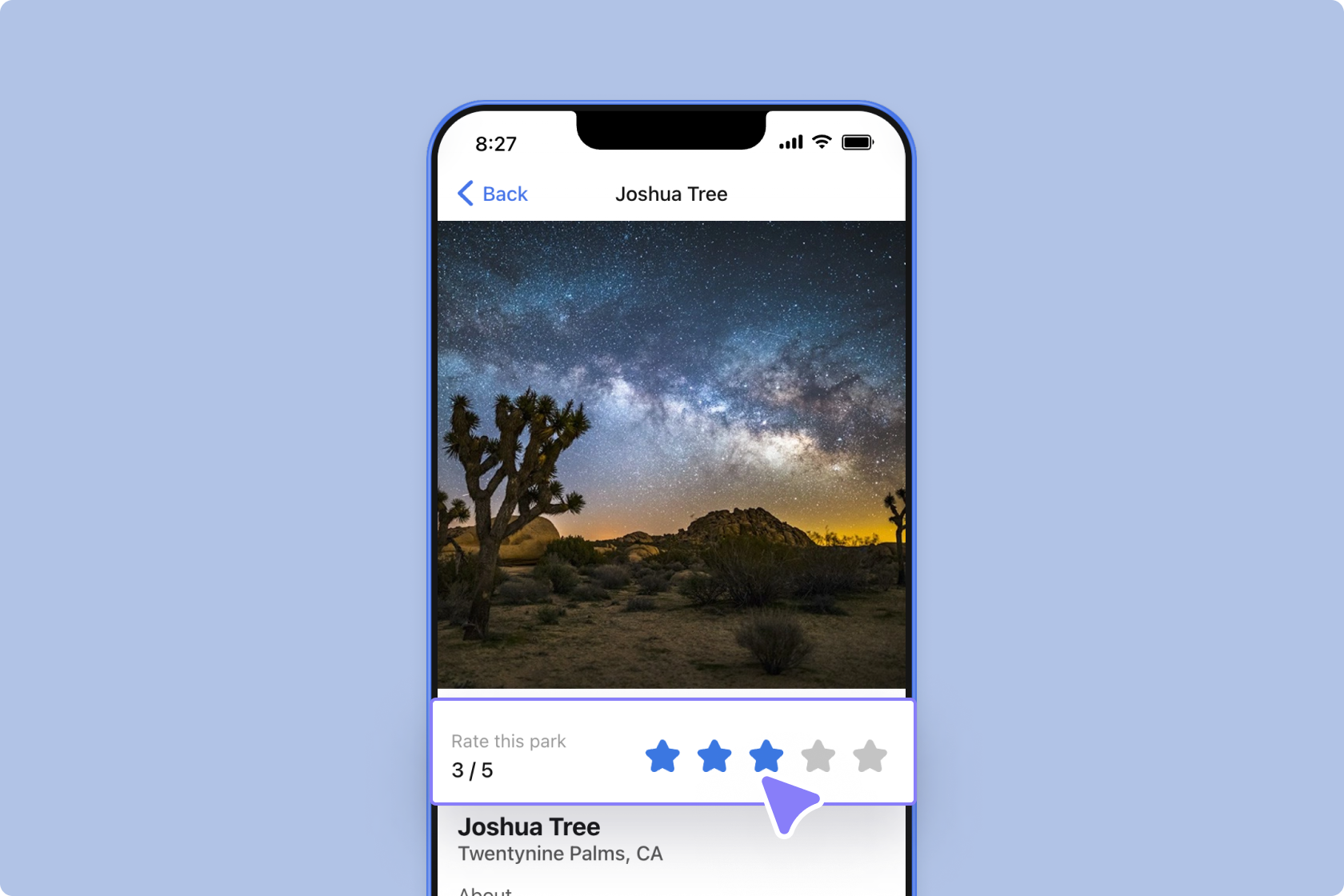 The Rating Component lets users rate items in your apps. They can tap and drag through the different values and the rating will be written to your Data Source.