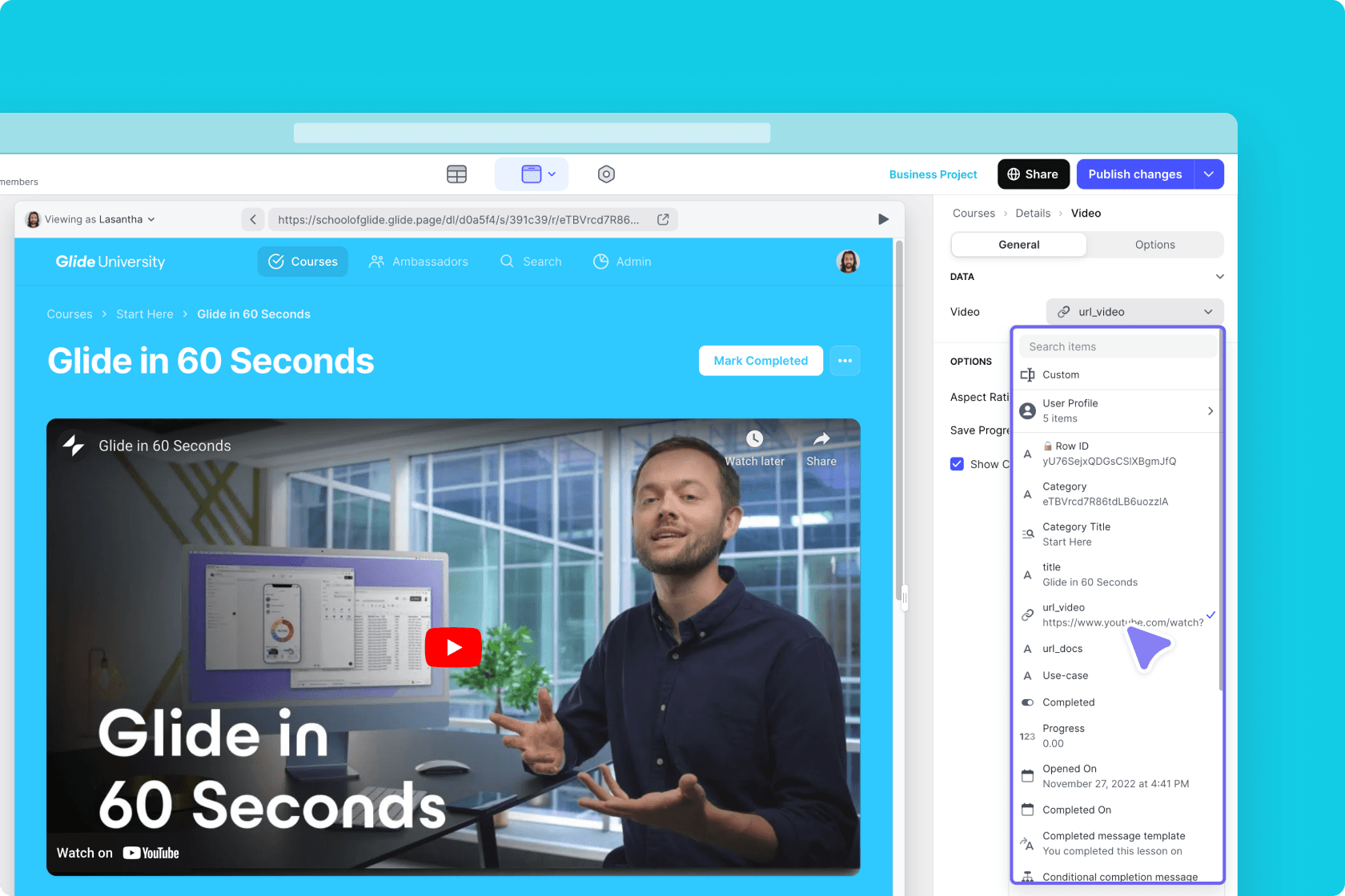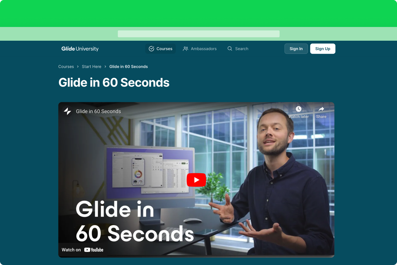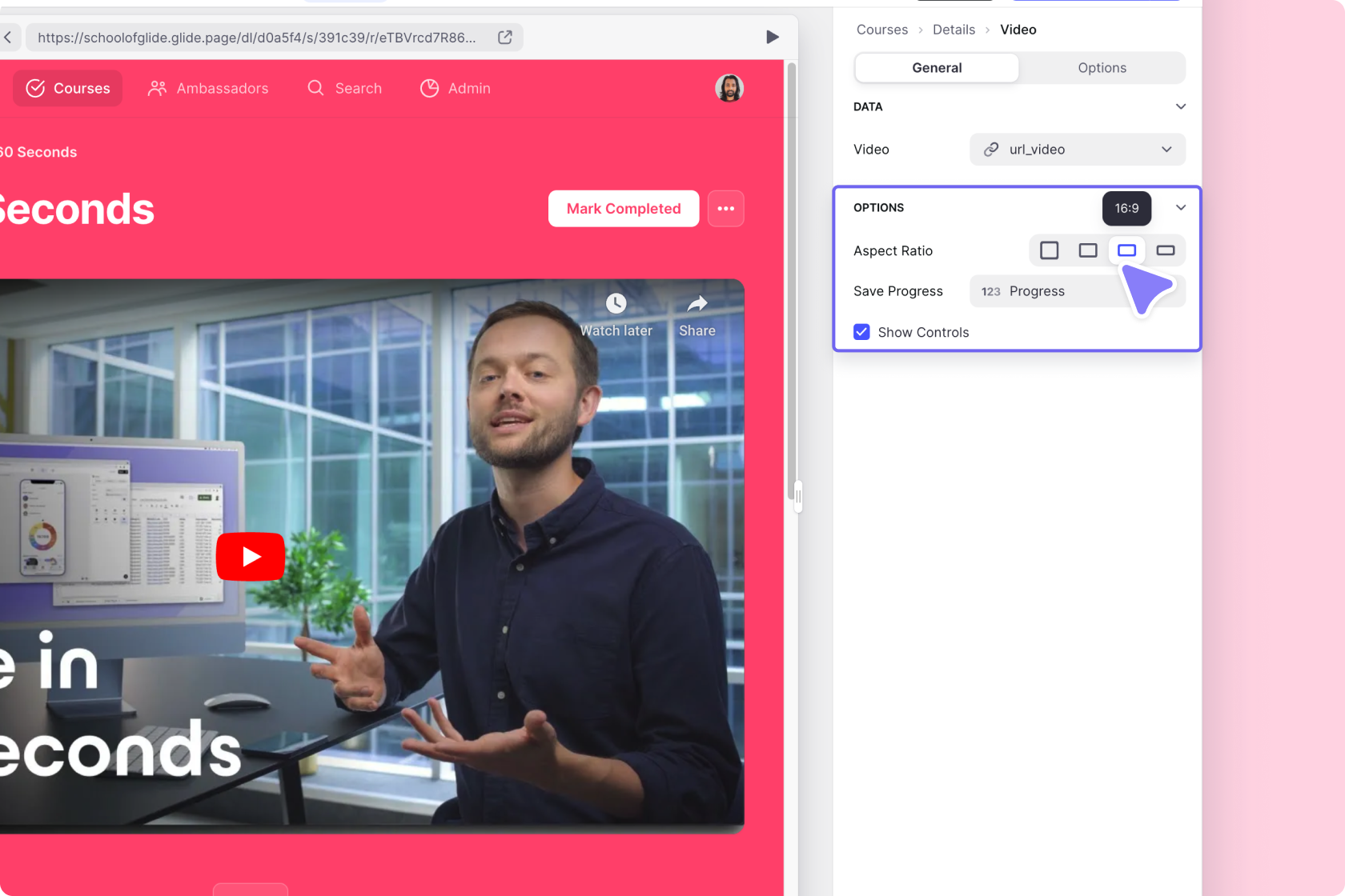 Hosting videos for the Video Component in Glide Tables or on Google Drive is not advised. Neither of those cloud storage locations is a video streaming service and may be unreliable. Instead, we encourage you to host your video on a streaming service (YouTube, Vimeo, etc.).