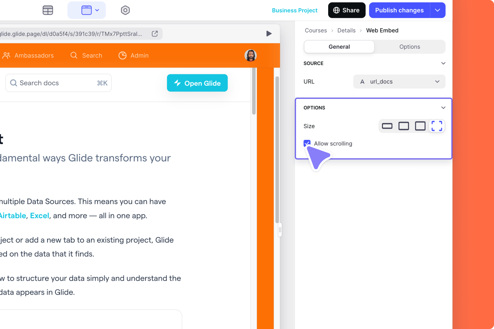 - Select Allow scrolling if you'd like users to be able to scroll the page like a traditional website.