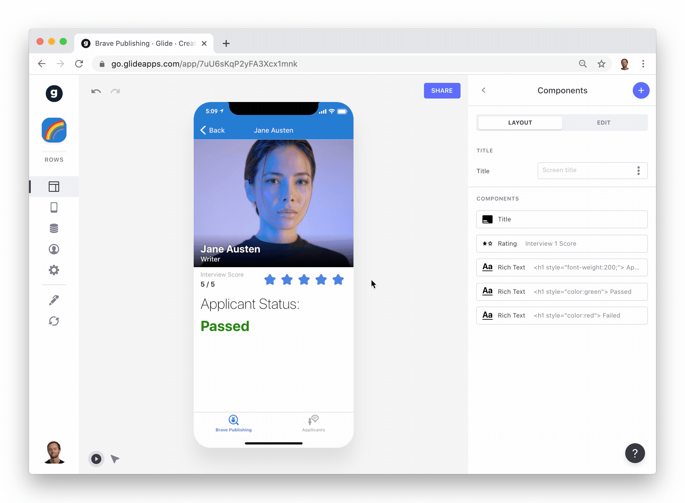 Once an interviewer assigns a score to an applicant in this app, the If → Then → Else column will automatically assign a status for the applicant - passed or failed.
