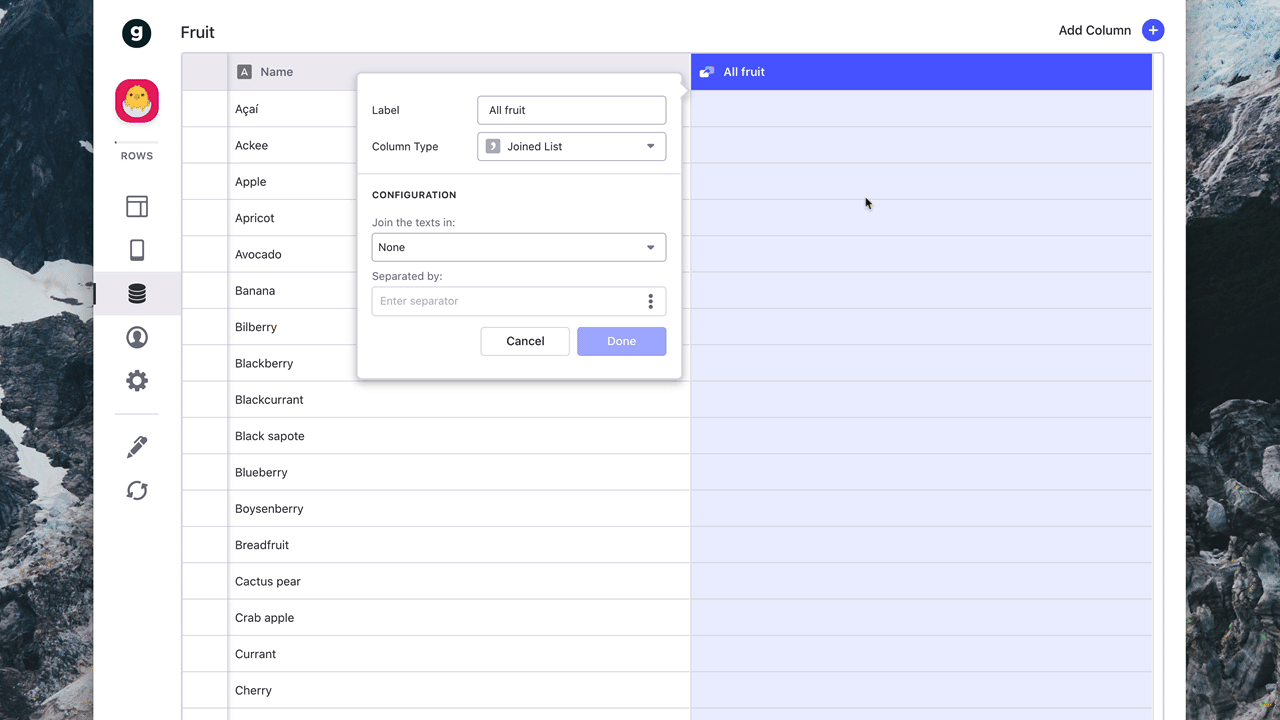 The Joined List column also allows you to choose how you separate these different values. By default, all values are separated by ", " but you can add whatever you want as a separator – including a value from another column.