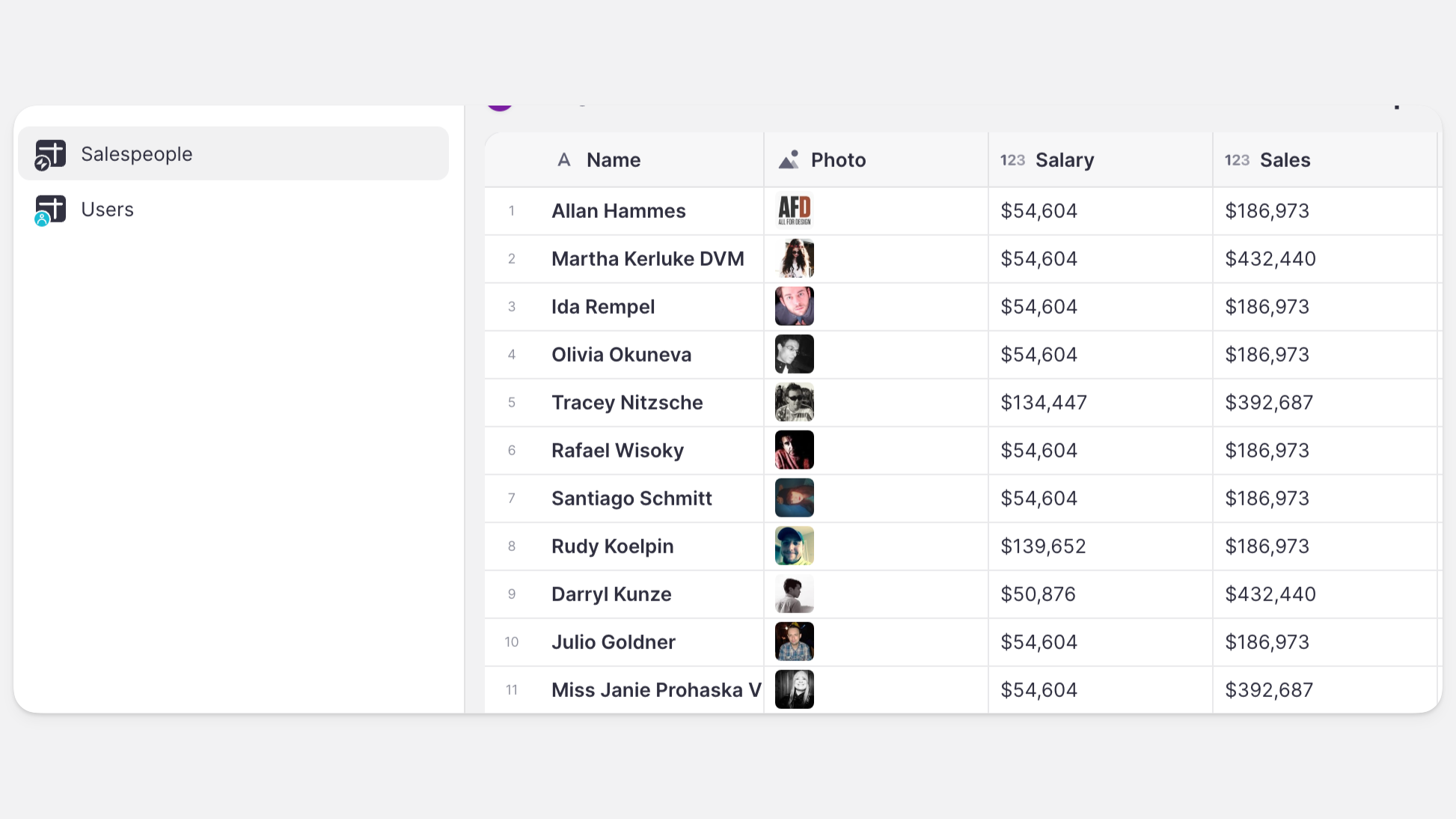Source: SalespeopleSort by: Sales descendingLimit: 100