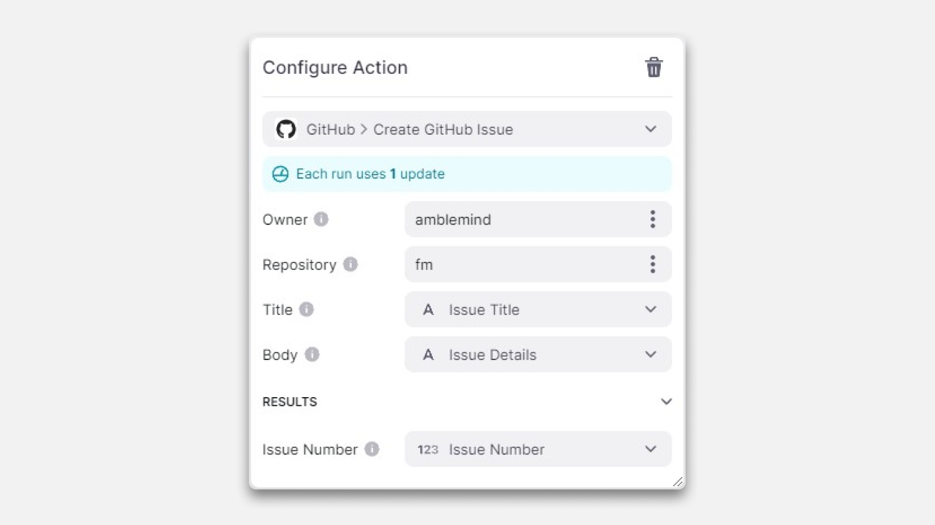 When the action is triggered, you should see a new issue added in GitHub. If you have provided a column for the Issue Number, the Issue Number that GitHub assigns will be stored in this column.