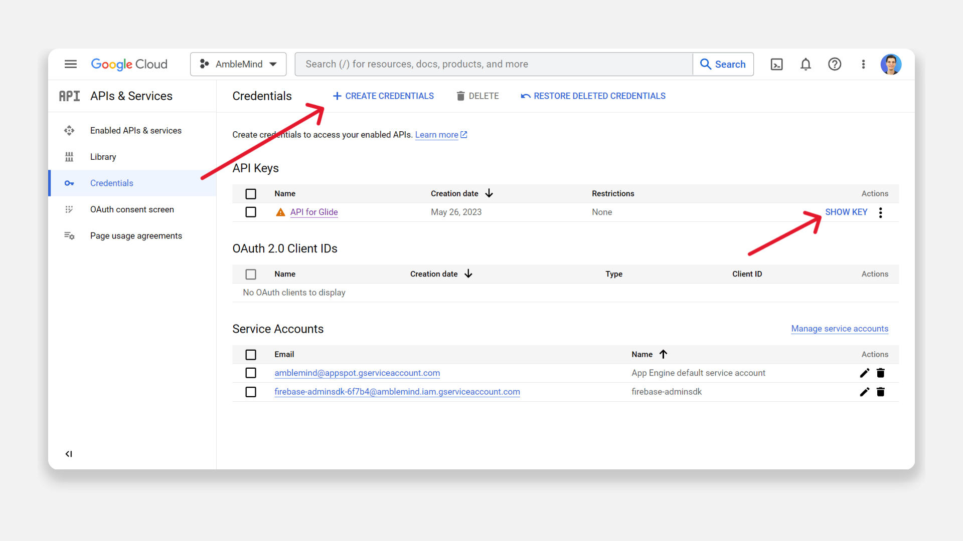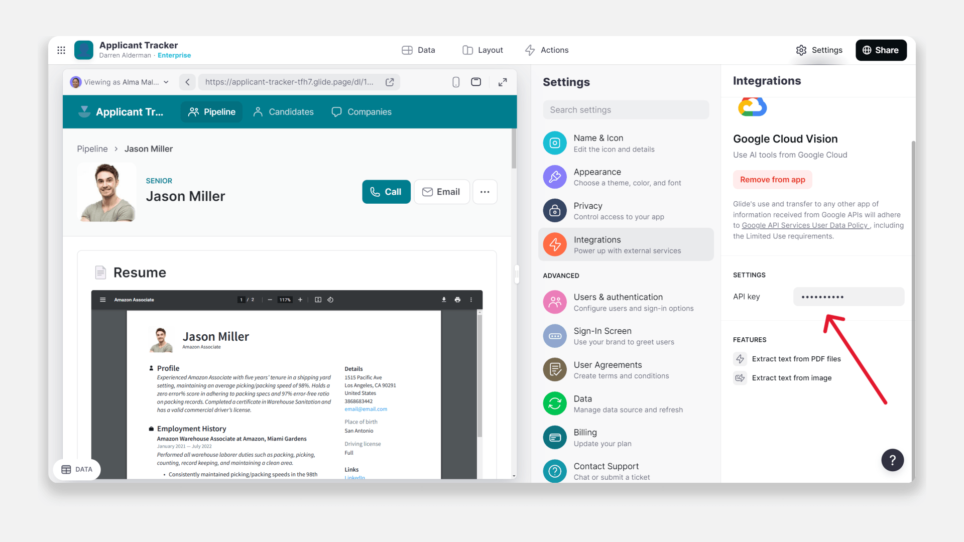 - Back in Glide, add your API Key in your Google Cloud Vision integration settings.