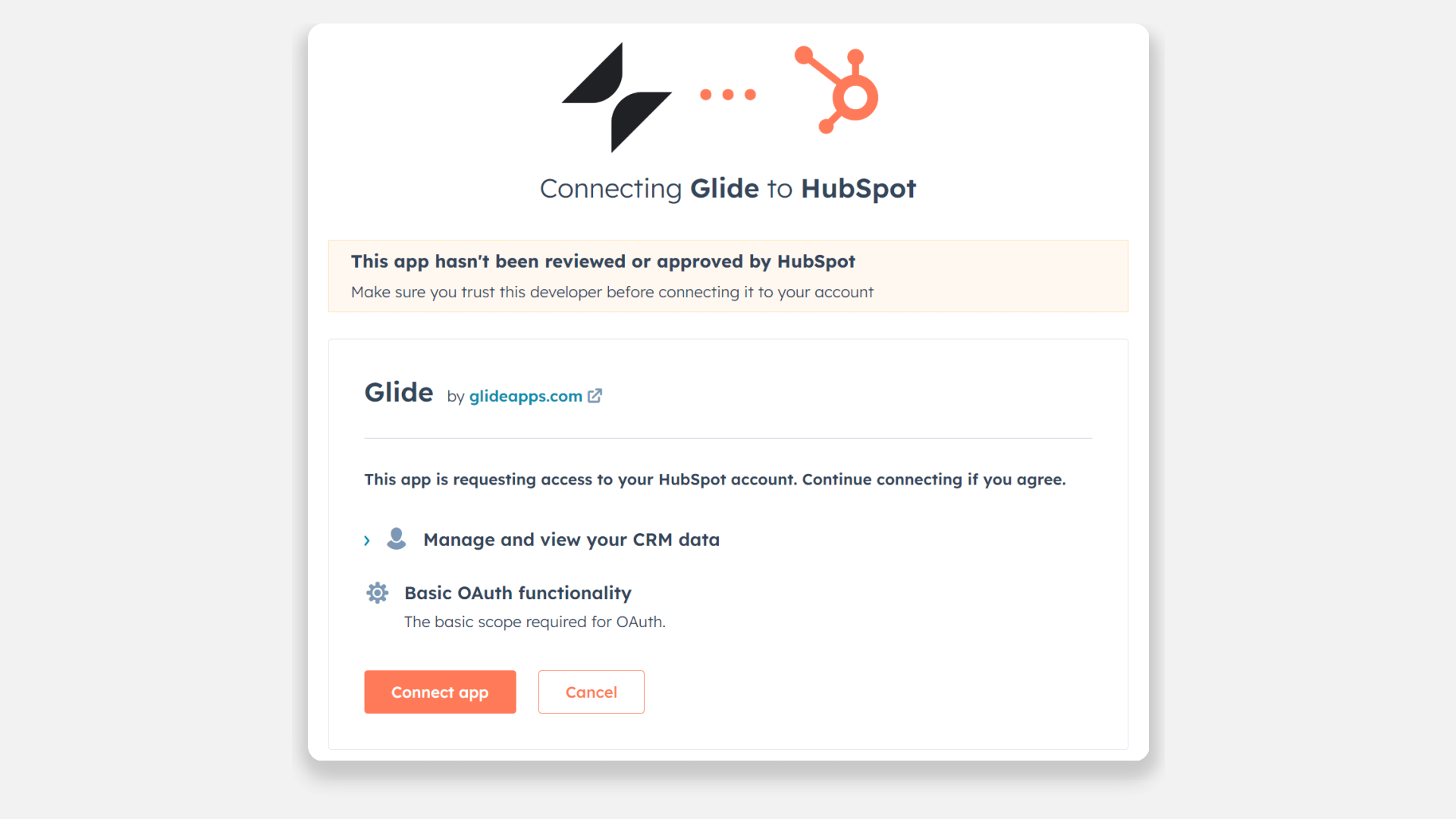 HubSpot is a marketing, sales, and customer service platform designed to help businesses grow and manage customer relationships. The HubSpot integration in Glide empowers you to seamlessly interact with your HubSpot Contact, Company, and Deal data.