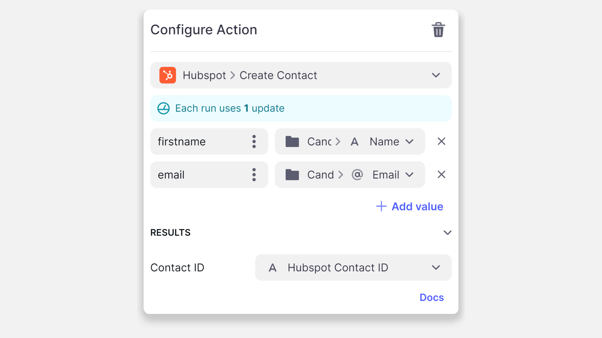 While not required, if you don’t fill out the “Values” field, a blank contact will be created in Hubspot.