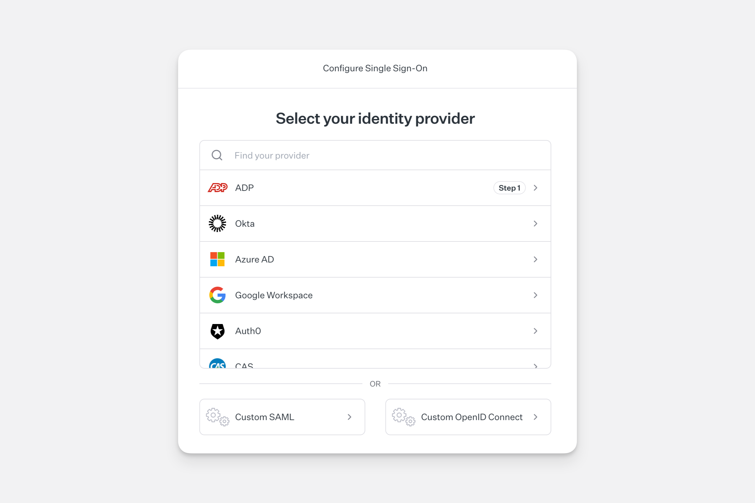 - Click Connect to provider and follow the setup wizard to connect with the identify provider of your choice.