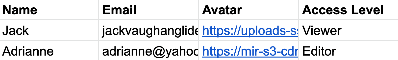 By default, Glide will create a user profile table with Name, Email, Photo, and Role. You can add more columns, depending on the properties of your users.