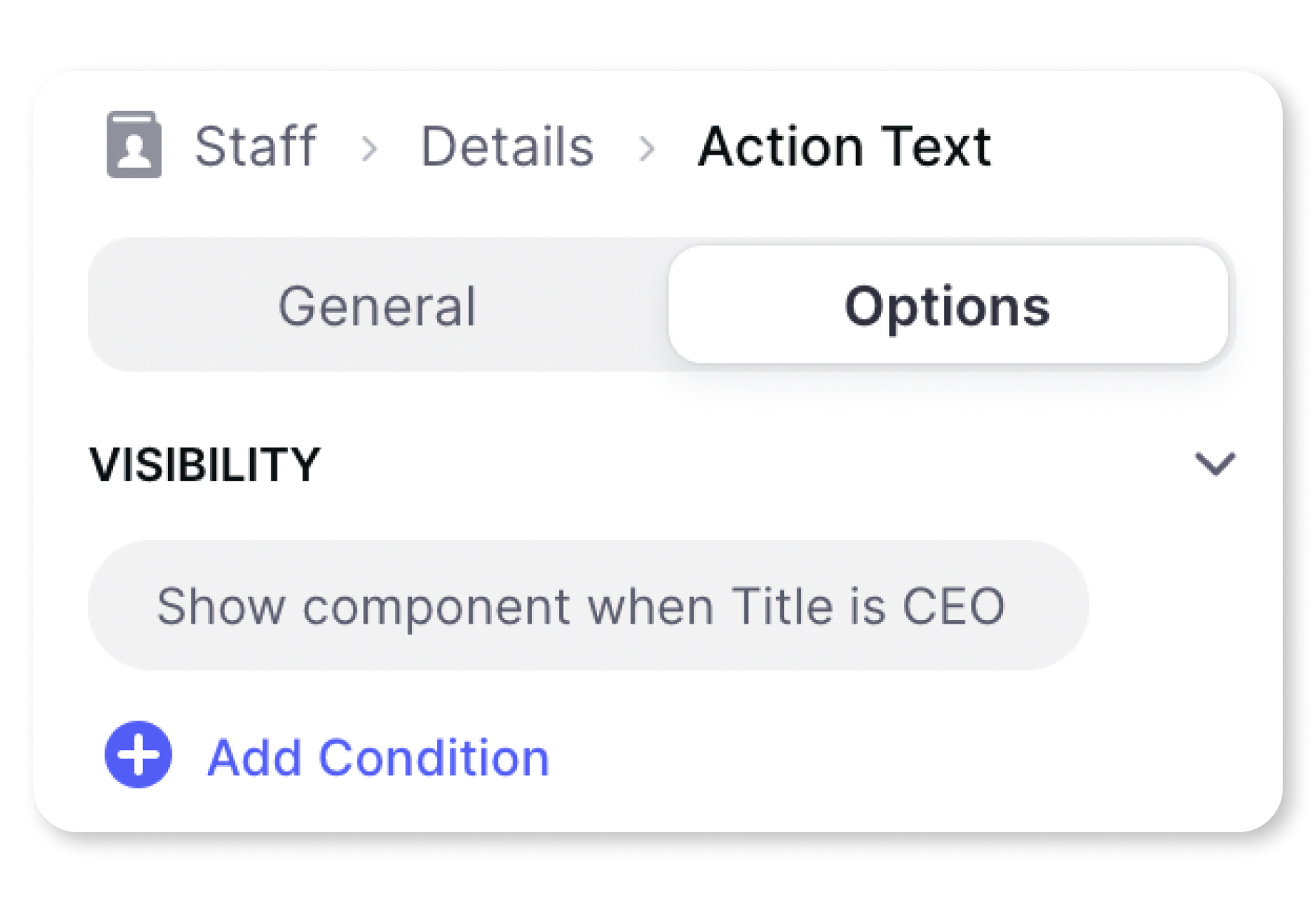 Visibility conditions, hidden tabs, and removed components are not security features—they are merely changes to the appearance of your app. Do not rely on changes to the appearance of your app for security.