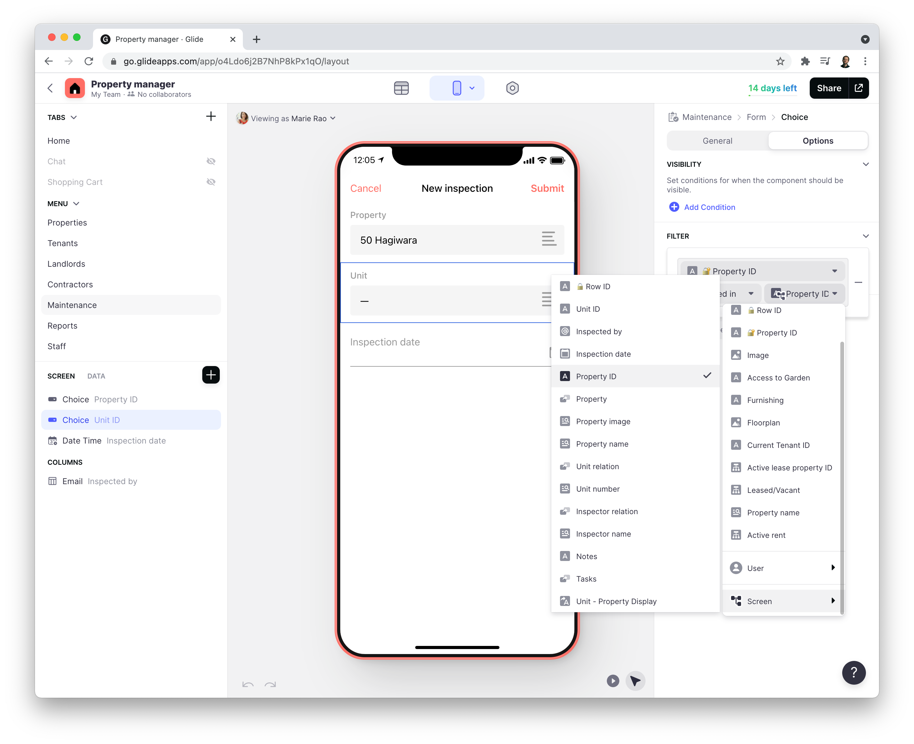Occasionally you will see the option to work with 'Screen' values in Glide. This can sometimes seem very similar to Column Values – but they are different in a couple of respects.